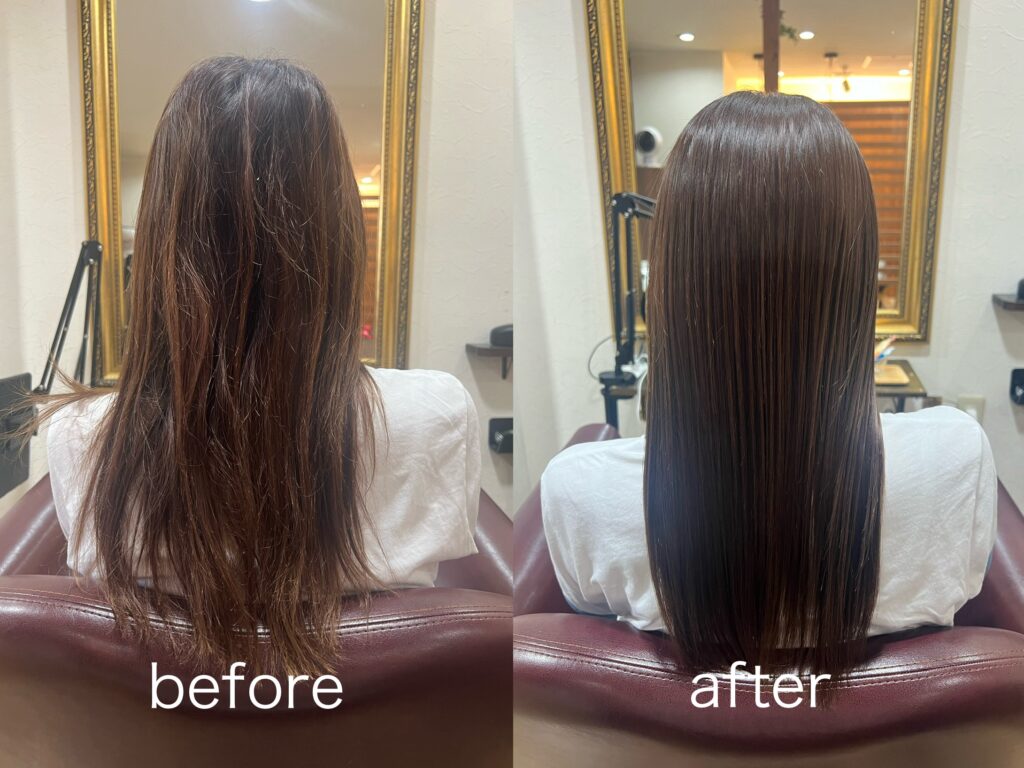 そんな疑問を持たれている方のために、今回は実際に髪質改善トリートメントを受けたお客様のビフォーアフターをもとに、効果と変化のポイントを解説していきます!